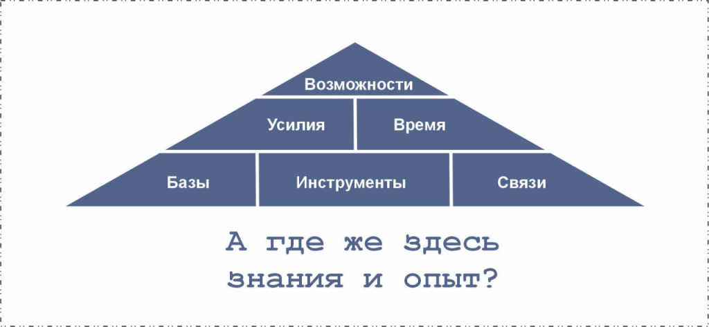 Поначалу думалось, что профессиональные знания и практический опыт, чуть ли не самое главное. Но лишь до тех пор, пока не построилась такого вида пирамида. Пирамида, в основании которой всё же должны лежать профессиональные знания и практический опыт.